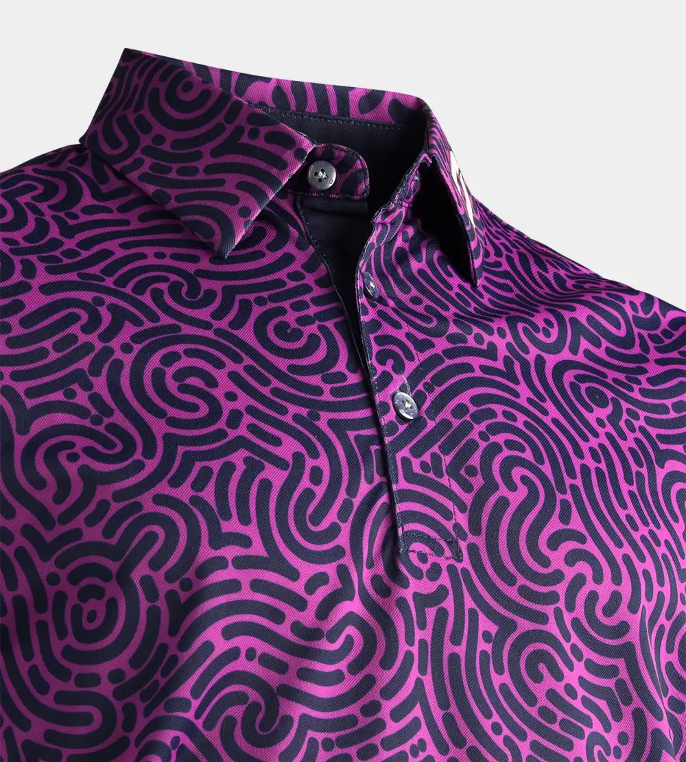 Tee time just got a whole lot more playful with our Jumble Golf Polo – where the only thing more unpredictable than your swing is the riot of patterns on your shirt! It’s not just a polo; it’s a kaleidoscope of fun that’ll have you looking like a pro and feeling like a goofball.