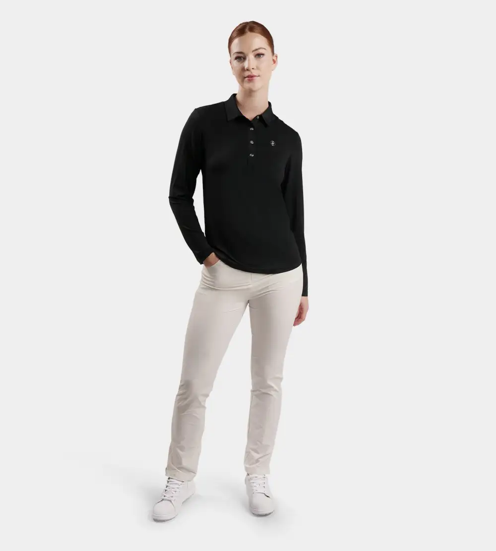 LADIES ELITE LONG SLEEVE POLO – BLACK
