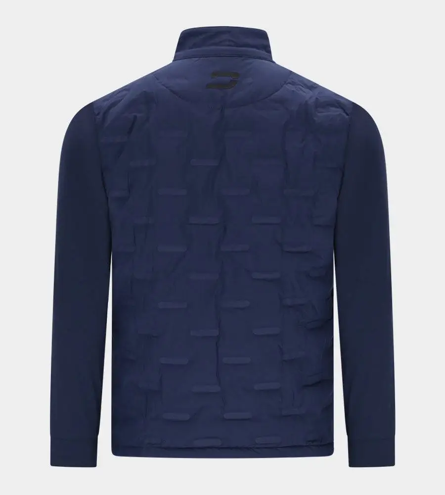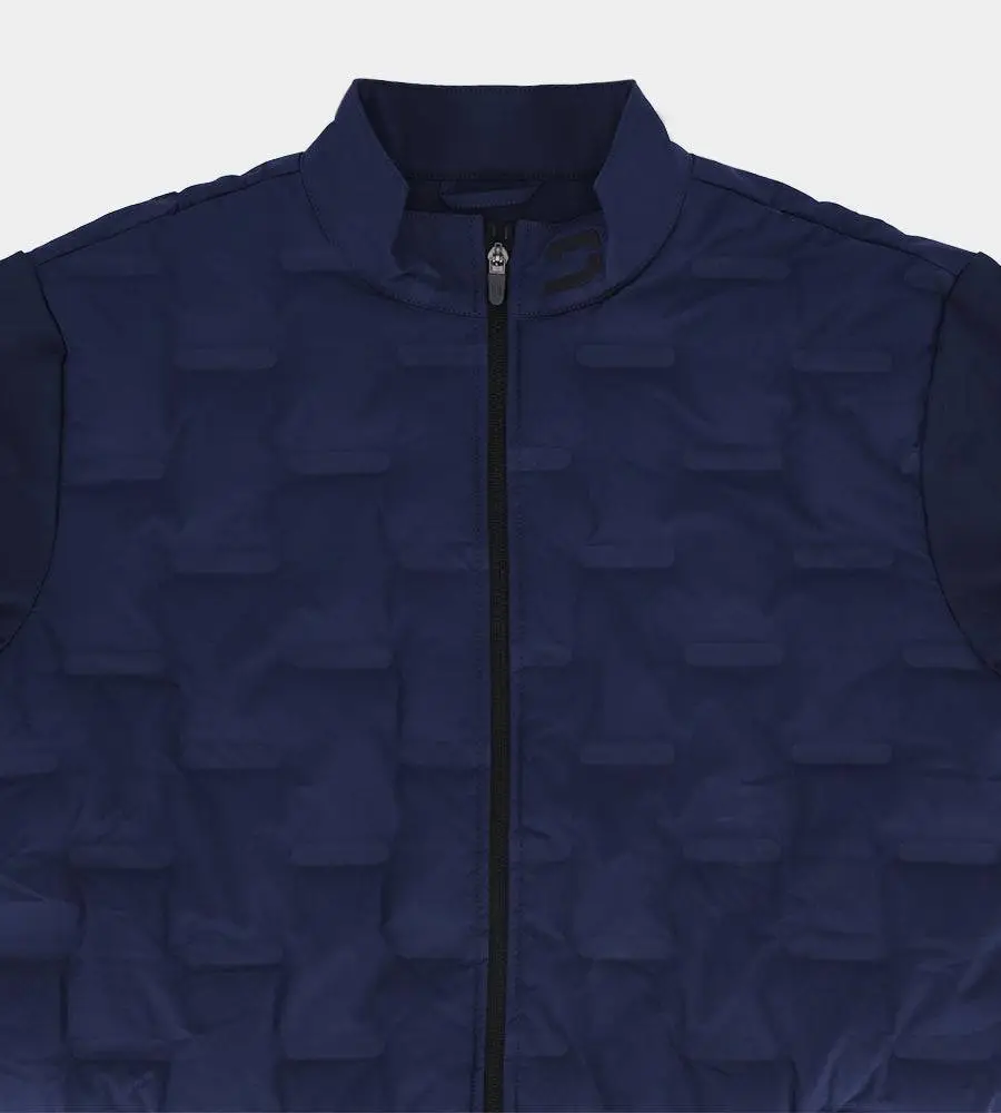 The members golf jacket is your ultimate companion on the golf course, combining style, sophistication, and functionality. This padded jacket is meticulously crafted to provide warmth and comfort, ensuring you stay focused on your game regardless of the weather. The sleek navy design with a subtle pattern on the jacket exudes elegance, making you look like a golfing legend the moment you zip it up.